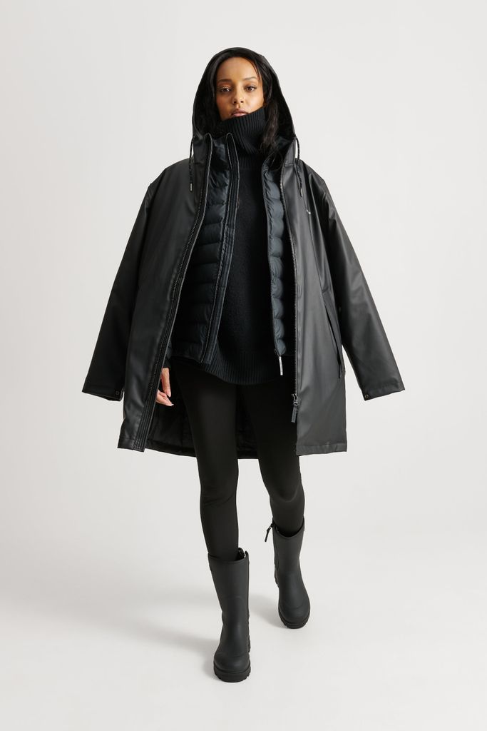 Tillverkad i PU med svetsade sömmar och vävda kanaler är jackan helt vattentät och andningsbar, håller dig torr och bekväm i fuktigt väder utan att kännas instängd.