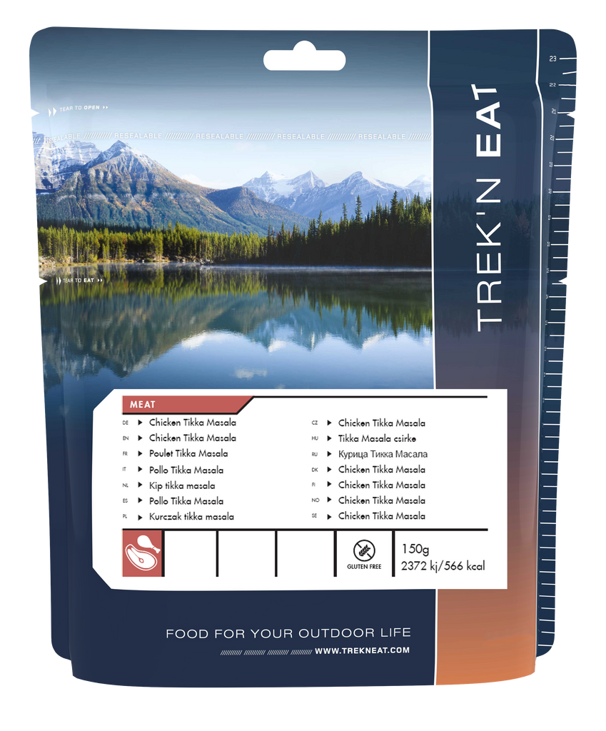 TREK'N EAT kycklingris är perfekt för vandring, enkel att tillaga: häll i 320 ml kokande vatten, rör om och låt vila i 8 minuter för en god måltid.