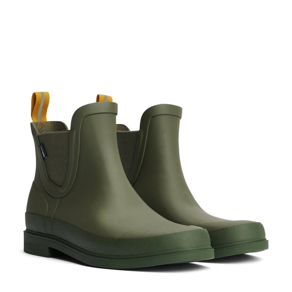 Eva är en stilren och praktisk stövel i vattentätt, PVC-fritt naturgummi. Förstärkt tå och häl samt resår och dragflik gör den stabil och enkel att ta på. Gå upp en storlek för bästa passform.