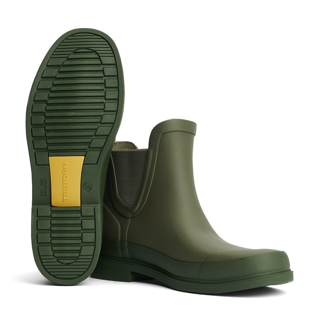 Eva är en praktisk stövel i vattentätt, PVC-fritt naturgummi med klassisk siluett, handgjord för stabilitet och komfort i alla väder, perfekt för både stad och natur.