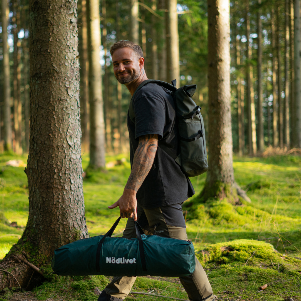 Med hjälp utav tältets förmonterade ram blir det enkelt att fälla ihop och packa ner i väskan.