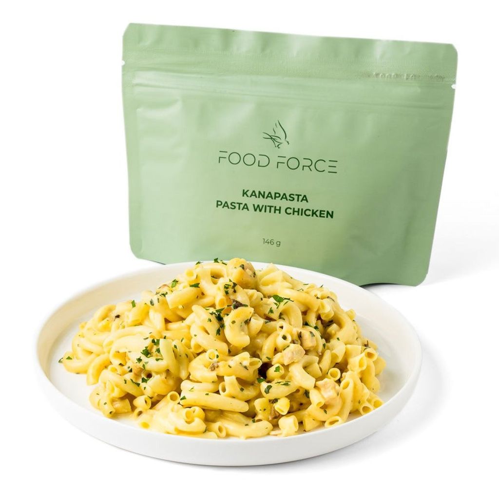 Food Force erbjuder ett brett sortiment av högkvalitativ frystorkad mat, perfekt för vandring, camping och nödsituationer. Deras Pasta with Chicken är tillverkad med noga utvalda ingredienser för att säkerställa näring och smak, med låg vikt och 3 års hållbarhet för enkel packning och beredskap.