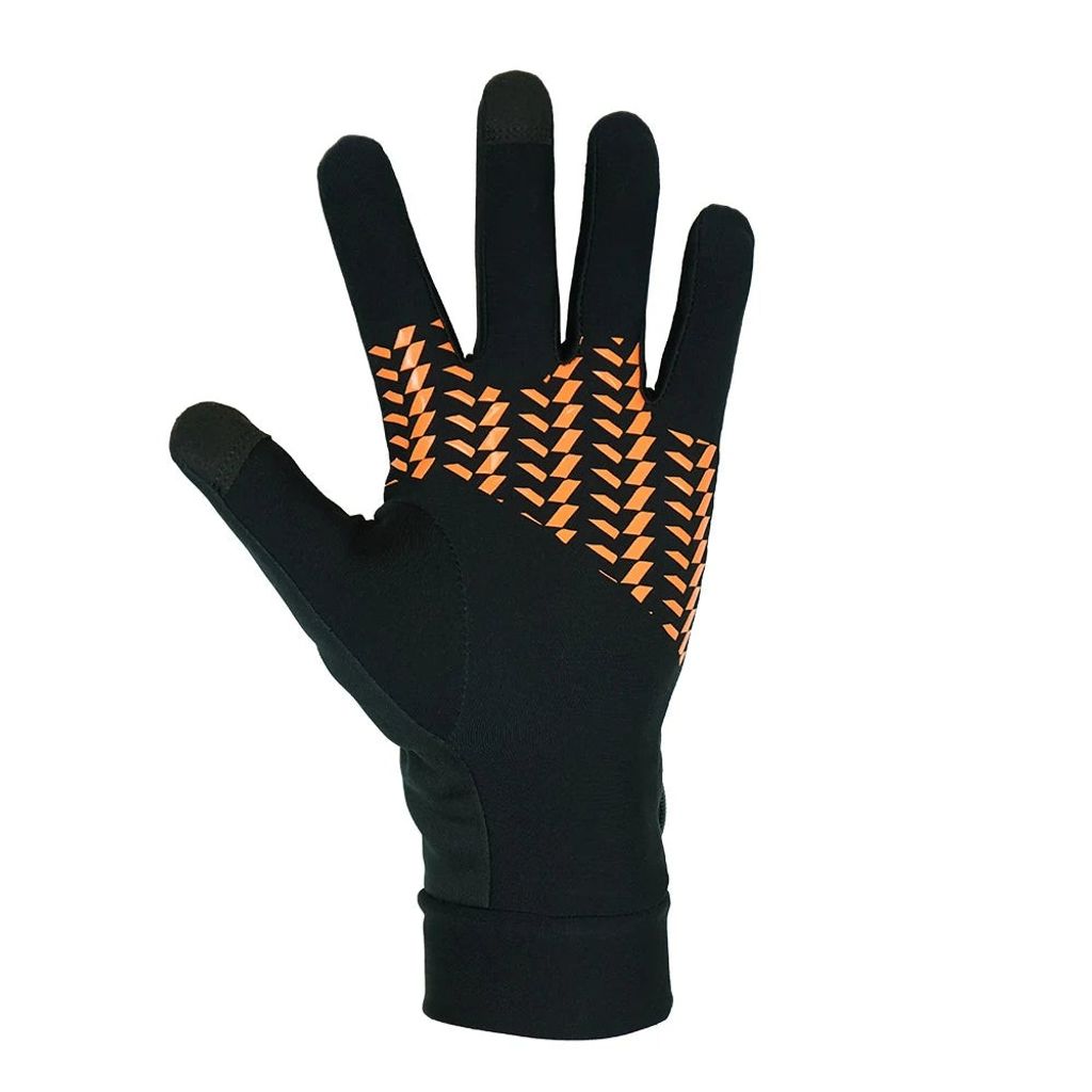 Med silikon i handflatan för grepp, ficka för luva och powerbank, i svart med orange eller svart silikon, kombinerar dessa handskar värme, funktionalitet och elegant design.