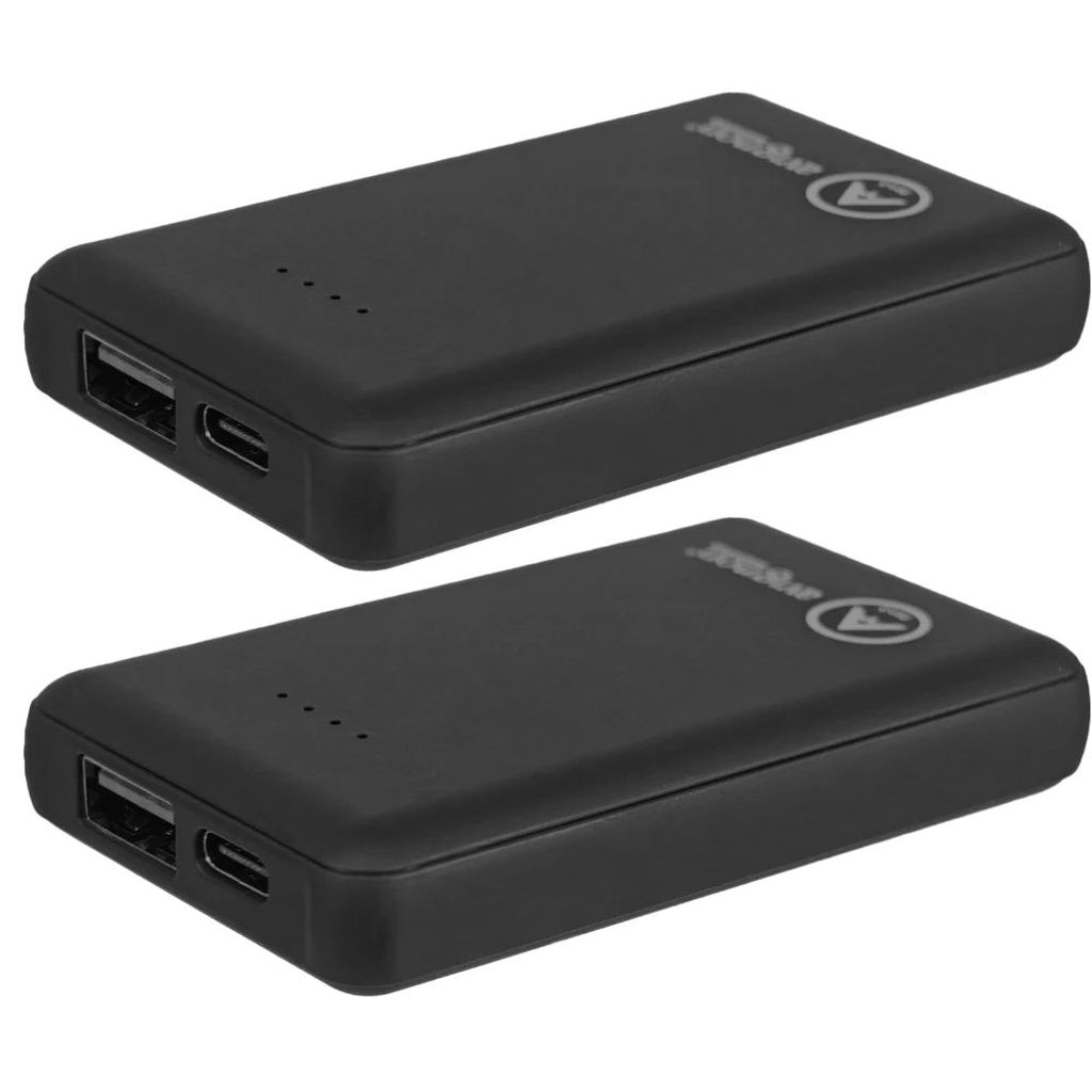 Avancerad Powerbank-teknologi | Två 5V 3450mAh Lithium-Poly Powerbanks med USB-C laddning och 20W snabbladdare. |
