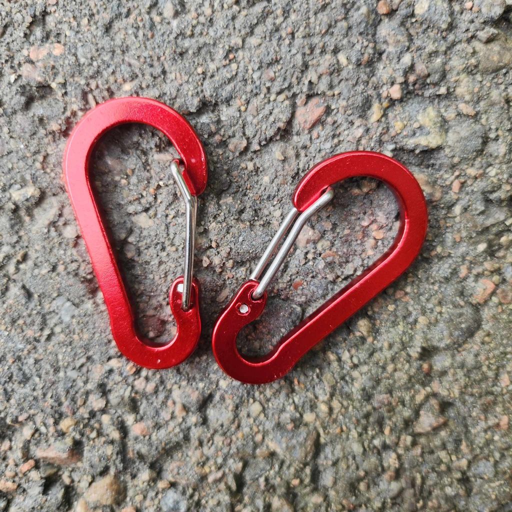 Våra röda karbinhakar är tillverkade av starkt och hållbart material som håller din utrustning säker och lättillgänglig. Den fjäderbelastade grinden gör det enkelt att snabbt fästa och lossa föremål – perfekt för vandring, camping och oförglömliga sommaräventyr.