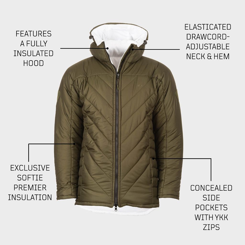 Softie Jacket 12 WGTE skyddar ner till -15°C med vändbar design, förlängd rygg och hög hals. Justerbar, isolerad huva håller huvud, nacke och ansikte varma.