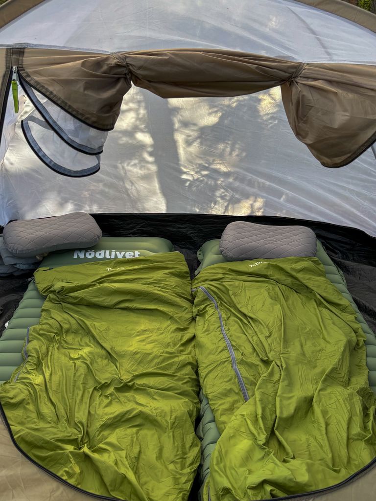 Kombinera två sovsäckar Koppla enkelt ihop två sovsäckar för att skapa en rymlig dubbelsovsäck.