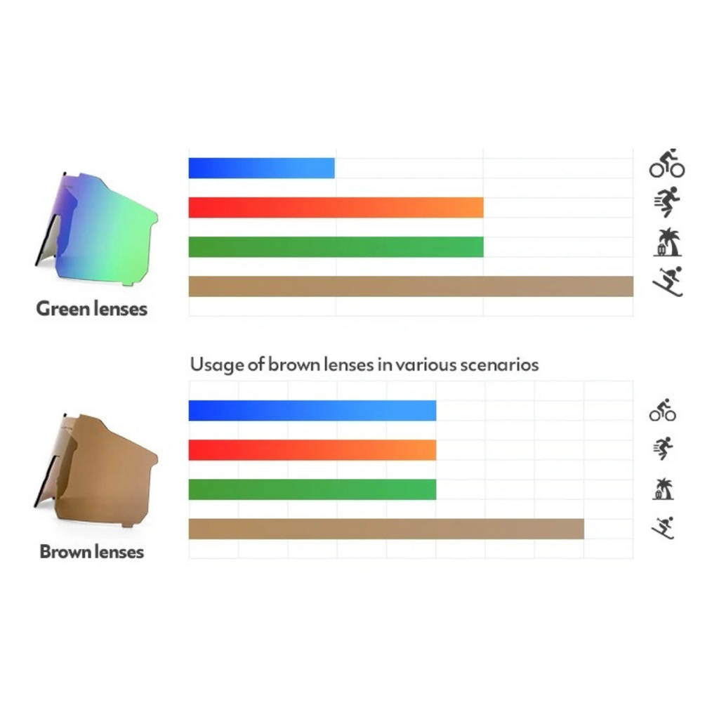 Samtliga linser erbjuder fullt UV400-skydd, vilket skyddar dina ögon från skadliga UVA- och UVB-strålar under utomhusaktiviteter.
