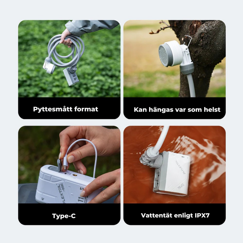 Flextail Tiny Shower att hålla dig fräsch och ren. Dess lilla storlek och låga vikt gör den enkel att packa med sig, och den är perfekt för alla som söker en kompakt duschlösning.