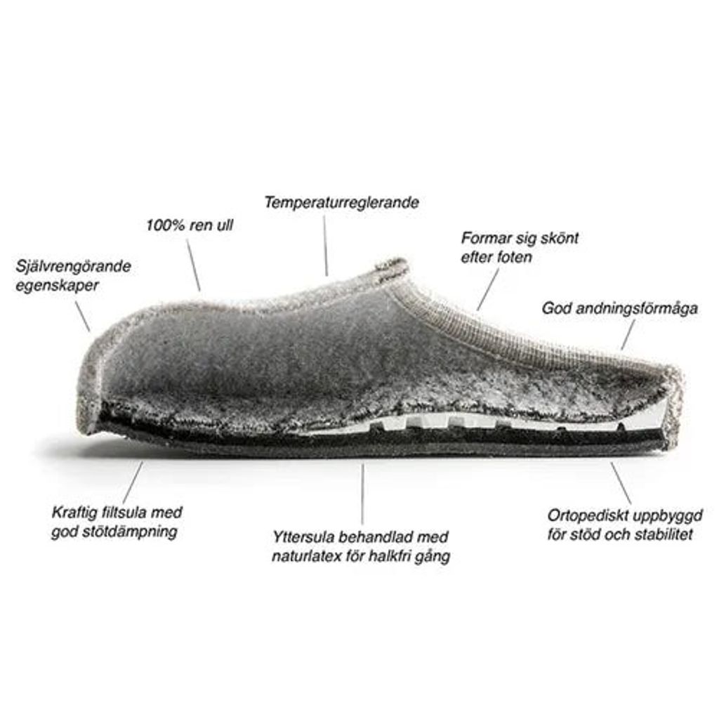 OBS! Ulltofflorna kan upplevas små i storleken, för en bekväm passform rekommenderar vi att du väljer en storlek större än normalt.