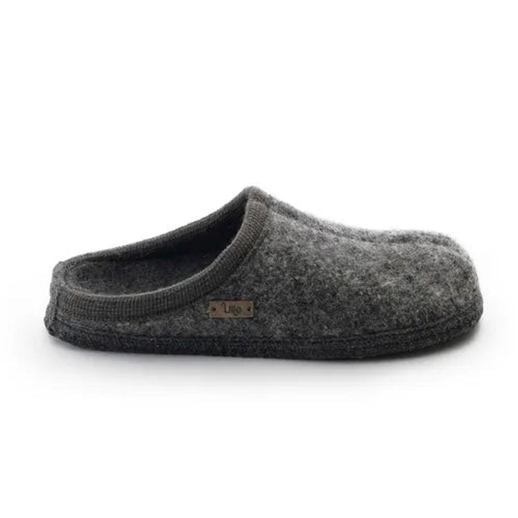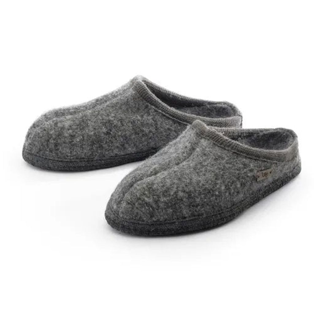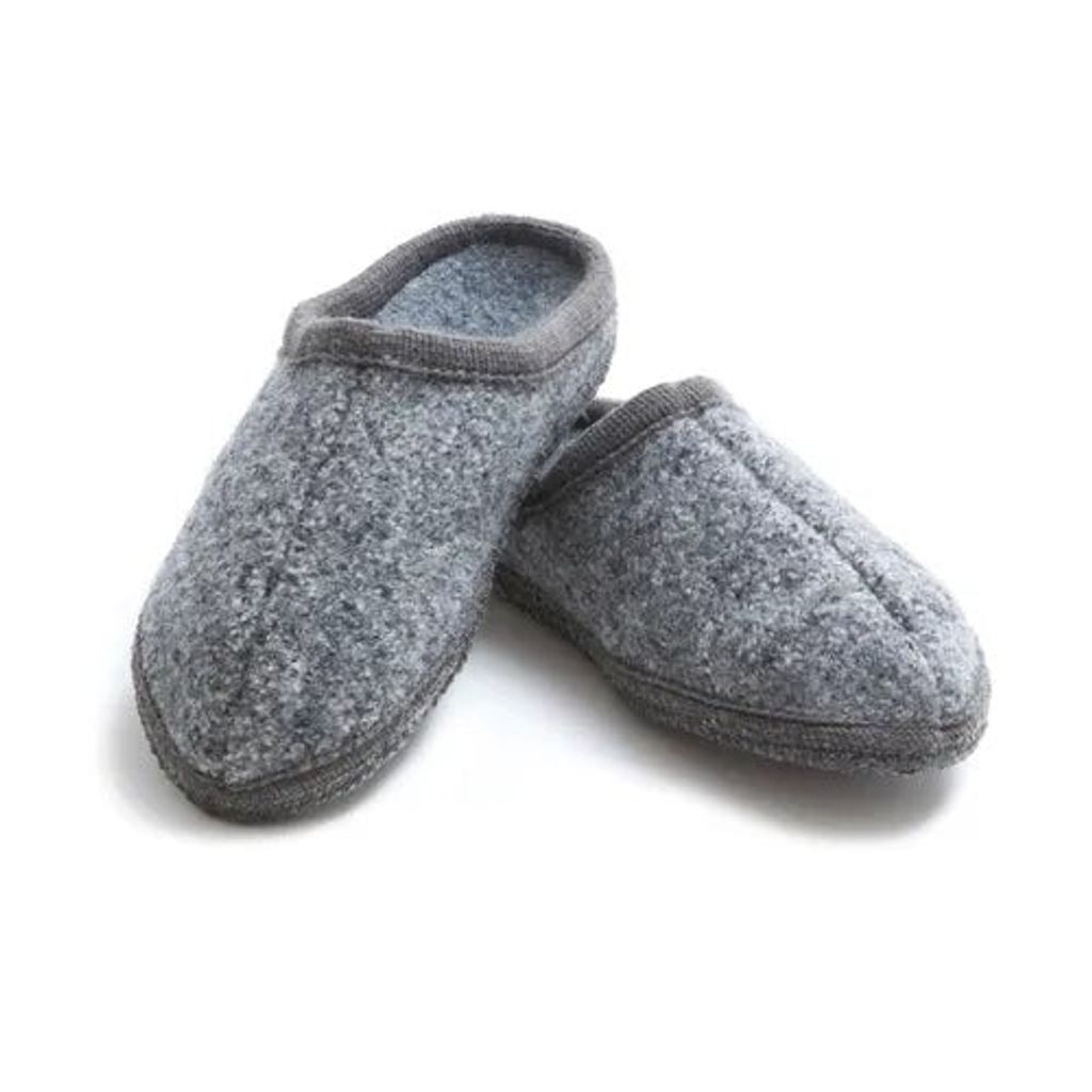 Ulltofflor i 100% ren ull (unisex, Grey Melange) formar sig skönt efter foten, med ortopedisk sula för stöd till häl och hålfot i en tidlös, bekväm design.