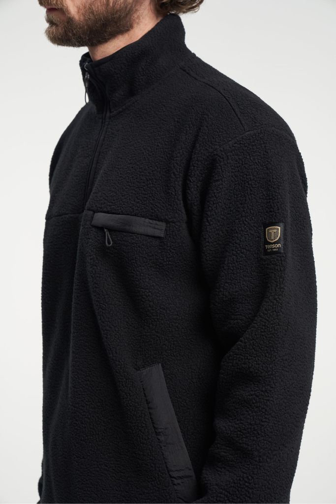 En mångsidig fleecetröja med halv dragkedja som passar både som mellanlager under en skaljacka och på egen hand under kyliga dagar. Den har två praktiska fickor med dragkedja, en stilren Tenson-logga på armen och en tidlös design för både vardag och friluftsliv.
